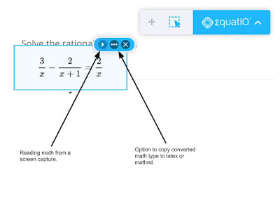 EquatIO allows for math and science to be "typed" using voice, handwriting, and screenshots. From an assistive technology use it allows students to "speak" mathematics and to have mathematics spoken to them. That's huge!